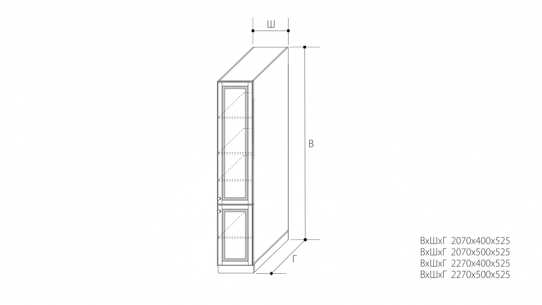 ВхШхГ: 2270х400х525 мм.